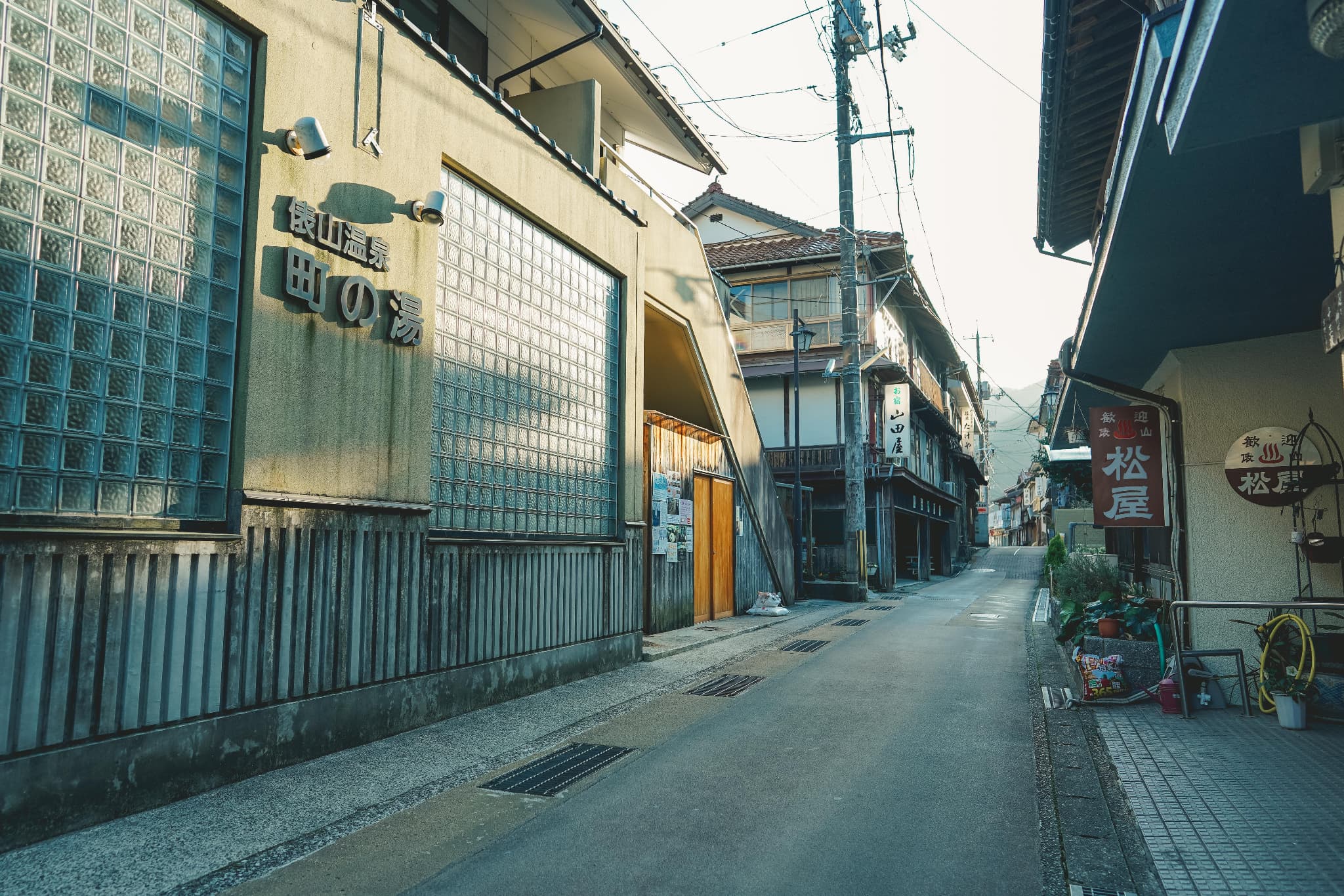 湯治場として歴史を刻む名湯俵山温泉。温泉街には趣ある宿が並びます。